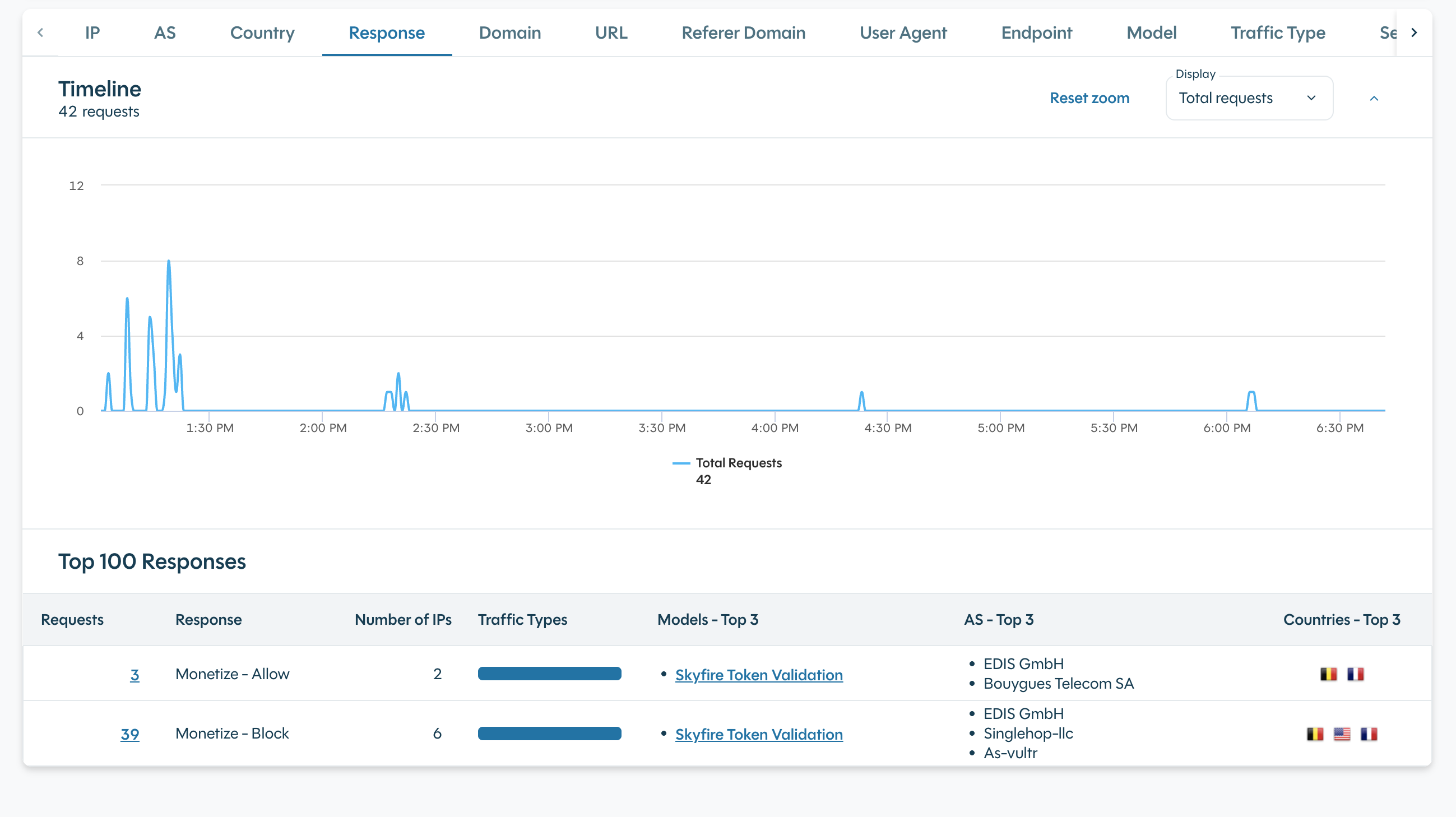 - When a request matches a model with the response policy set to Monetize, DataDome detection engine invokes Skyfire token validation flow.