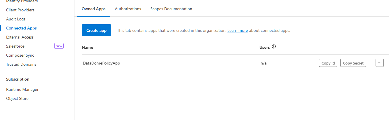 Obtain the client-id and client-secret from the DataDomePolicyApp