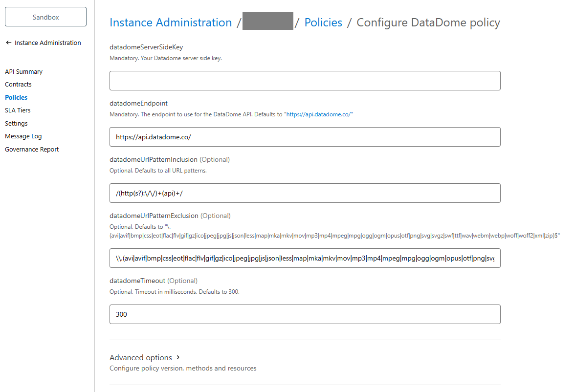 datadomeServerSideKey | Can be obtained from: DataDome Dashboard > Management > Integrations . | |