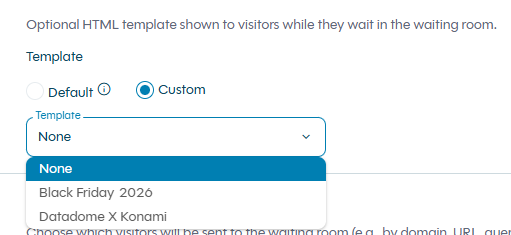 - Select your template in the Waiting Room settings